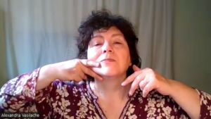 Masajul maxilarului – o mișcare de glisare în lungul maxilarului, având degetul arătător pe deasupra și cel mijlociu pe sub maxilar.