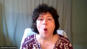 - a doua este cu gura semideschisă și buzele răsfrânte în interior, îmbrăcând bine dinții